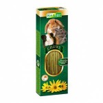Naturalny gryzak w postaci suszonych, długich pędów topinamburu. To jedna z dwóch nowych propozycji w tej kategorii krakowskiego producenta karm i przysmaków dla królików i gryzoni. Opakowanie zawiera sporo pędów, które pozwolą Twojemu Pupilowi chrupać i ścierać siekacze :-)